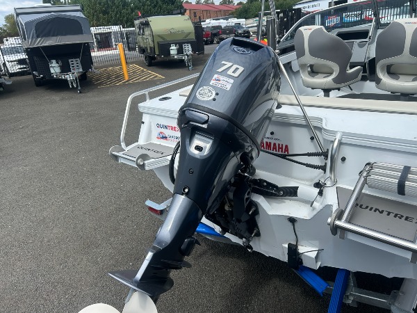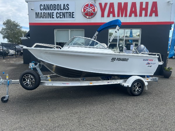 RRP $47,495 Quintrex 450 Fishabout Pro Fitted with Yamaha 70hp Yamaha 703 control box SDS yamah alloy propeller Yamaha 6Y8 twin gauges Hydralic steering Travel cover Bimini Vivid 7SV sounder 12 months NSW boat and trailer rego Inland safety gear Crank battery , tie downs , motor support. Spare wheel