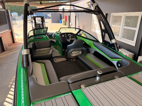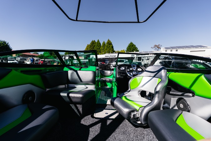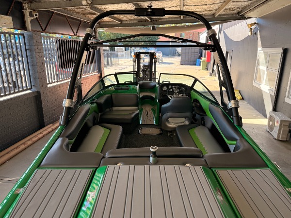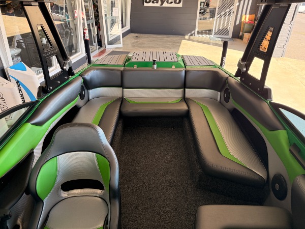 The X-AIR WAKE FX is the most serious wake boat offered by Skicraft to date; delivering a tournament style wake for skiers. The X-Air WAKE FX comes standard with a fully adjustable wake plate, club lounge layout with full walk through bow section.
